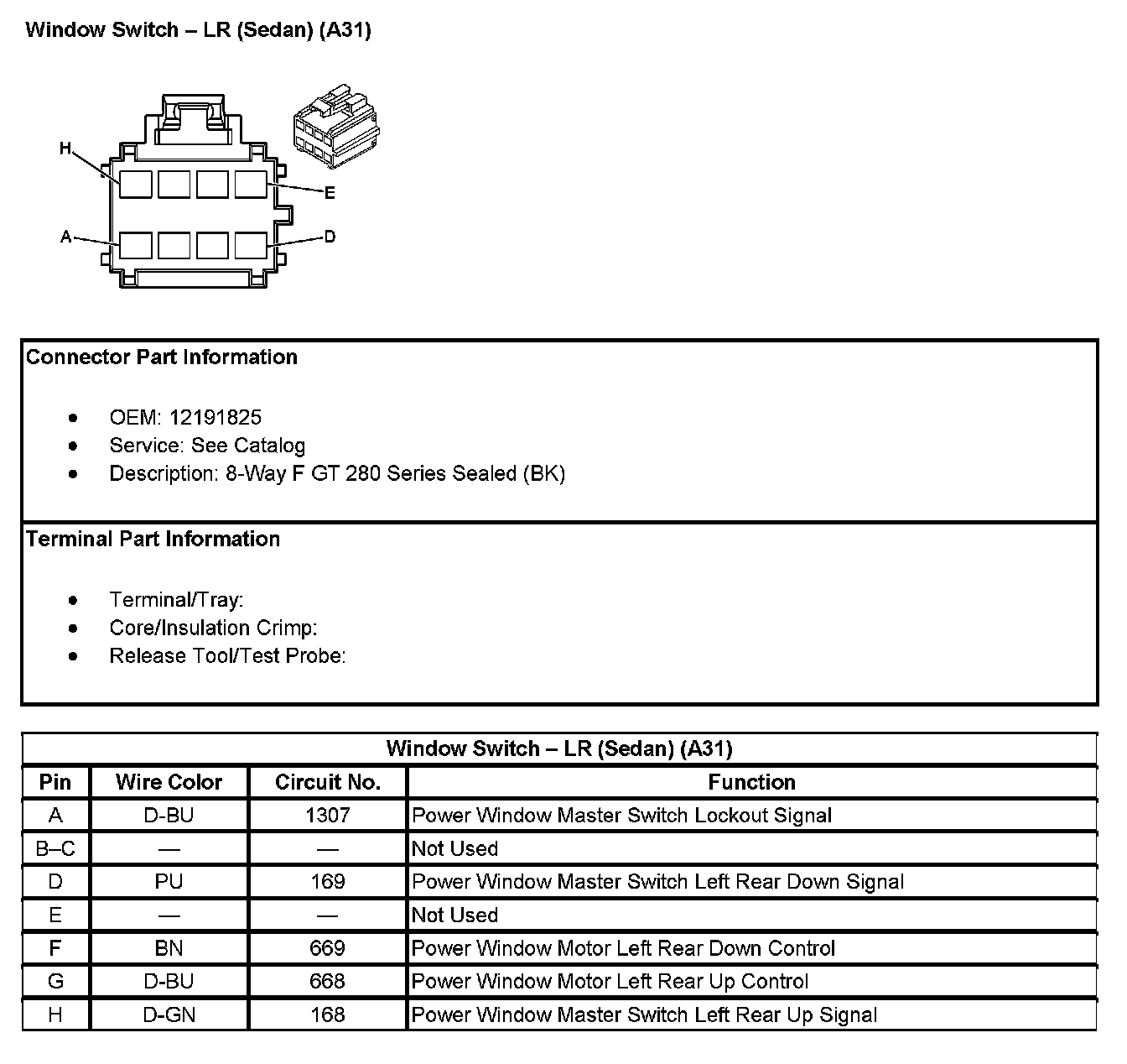 Window Switch - LR (Sedan) (With RPO Code A31):