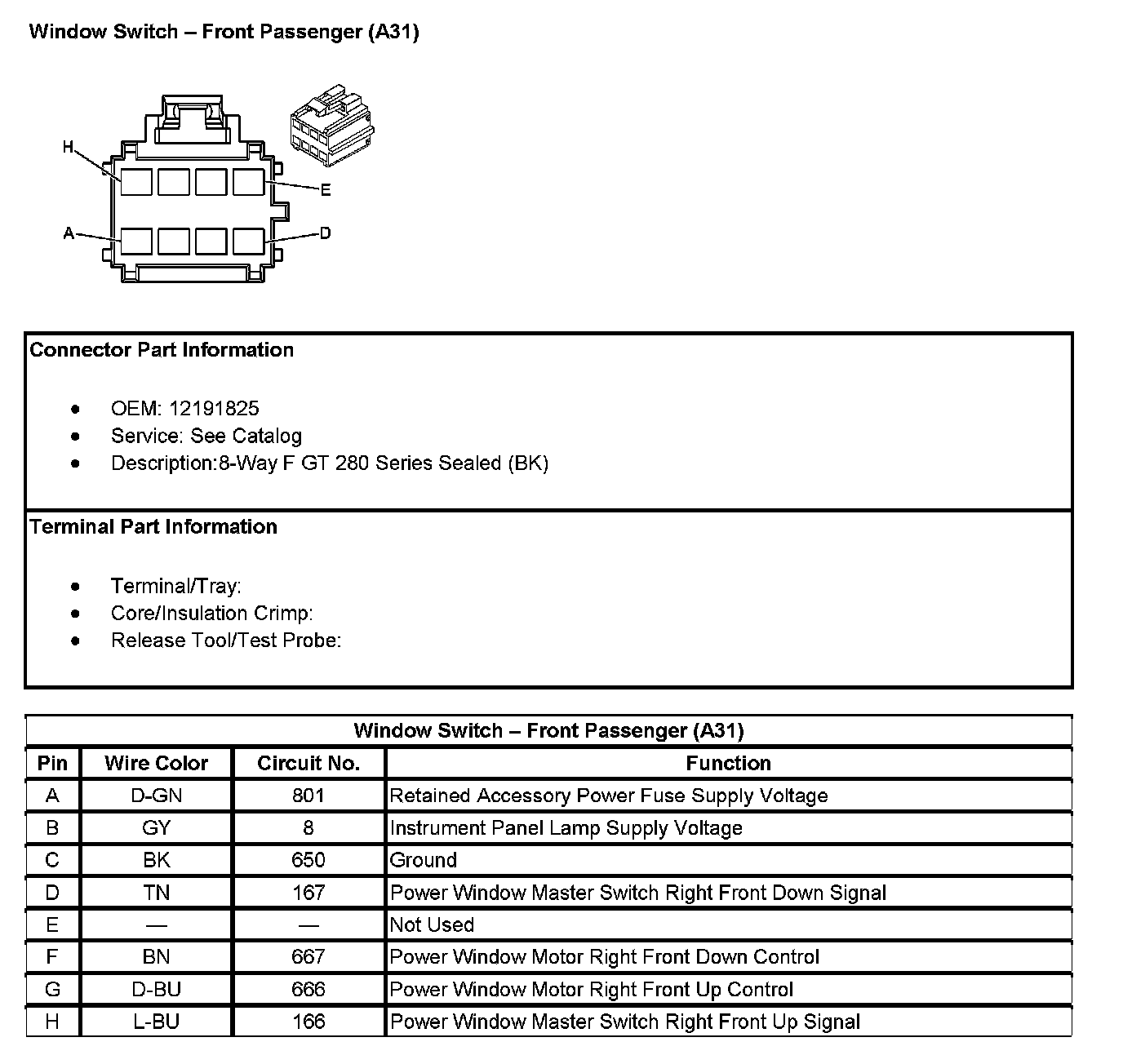 Window Switch - RR (Sedan) (With RPO Code A31):