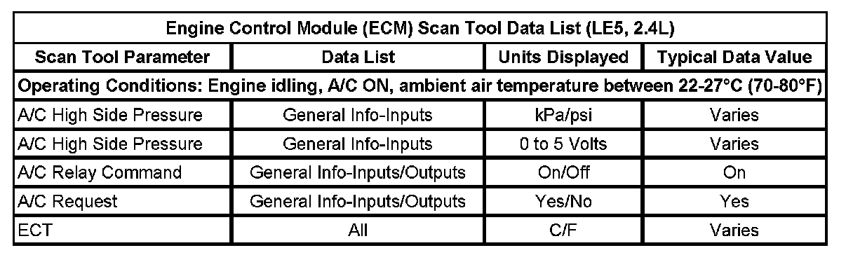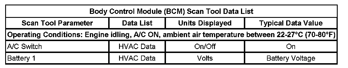 Use the Scan Tool Data Display Values and Definitions Information in order to assist in diagnosing the HVAC control assembly problems. Compare the vehicles actual scan tool data with the typical data display value table information. Use the data information in order to aid in understanding the nature of the problem when the vehicle does not match with the typical data display values.