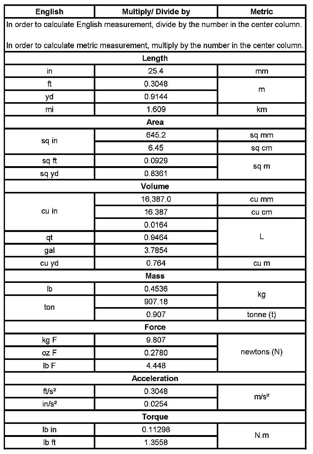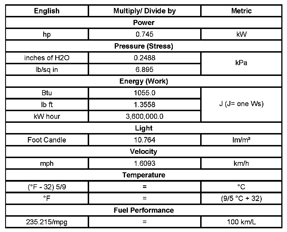 US English/Metric Conversion