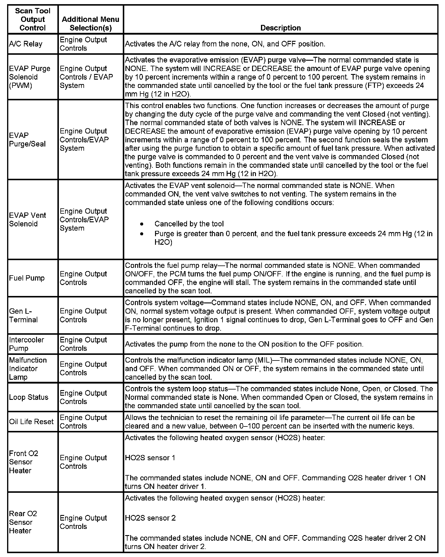 Scan Tool Output Controls