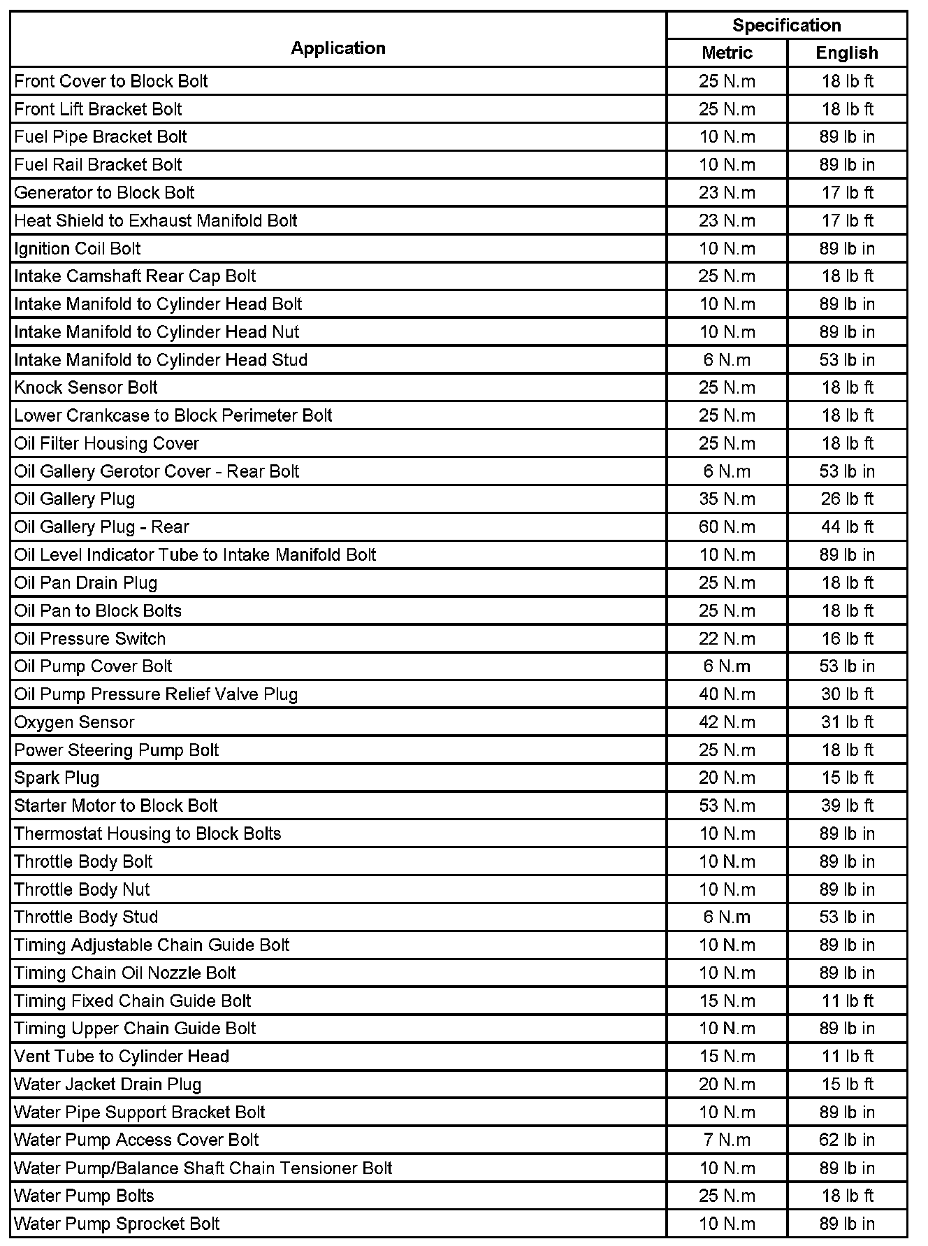 Fastener Tightening Specifications (Part 1):