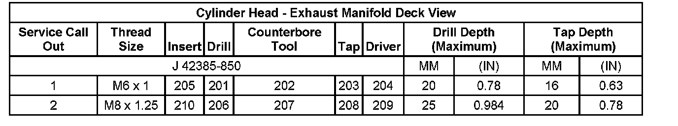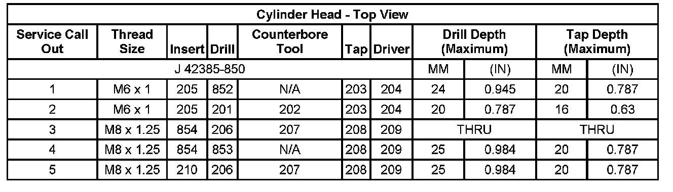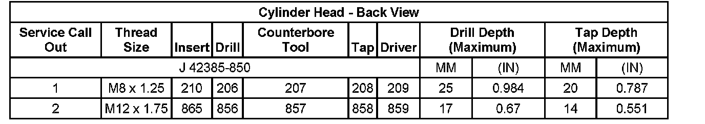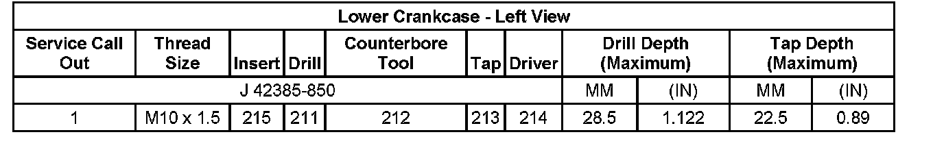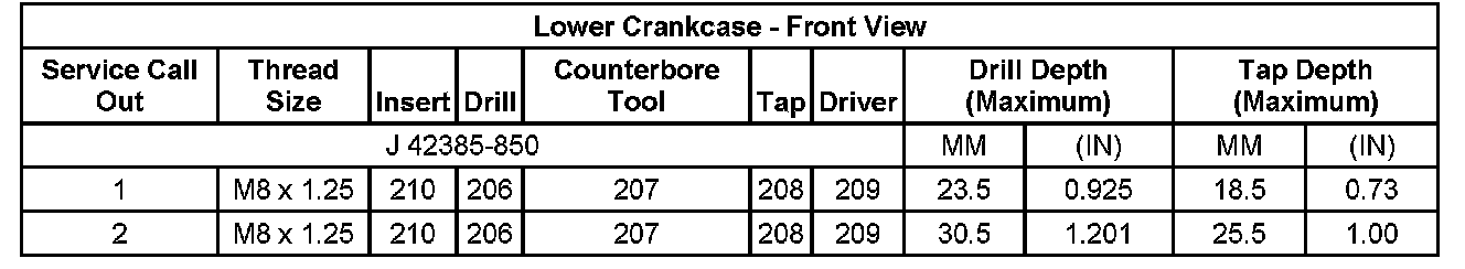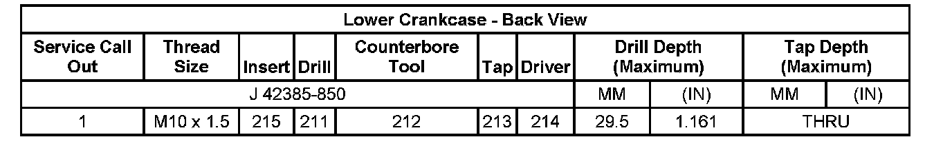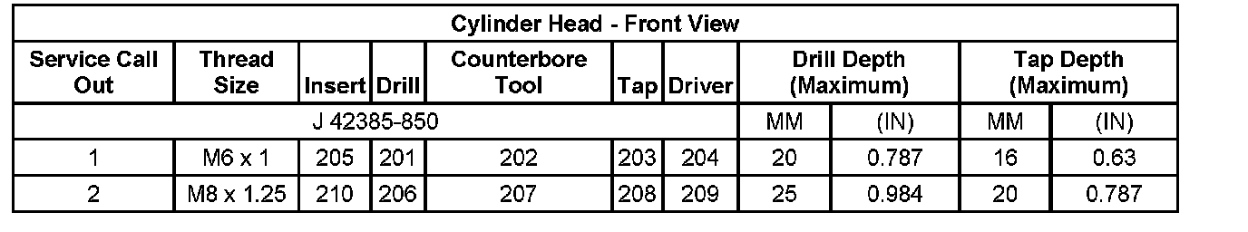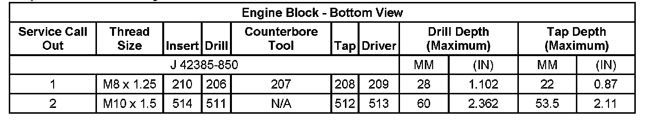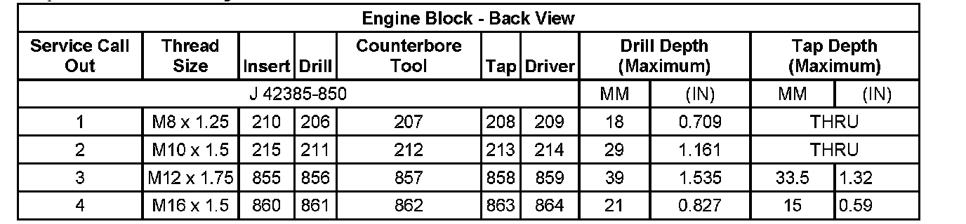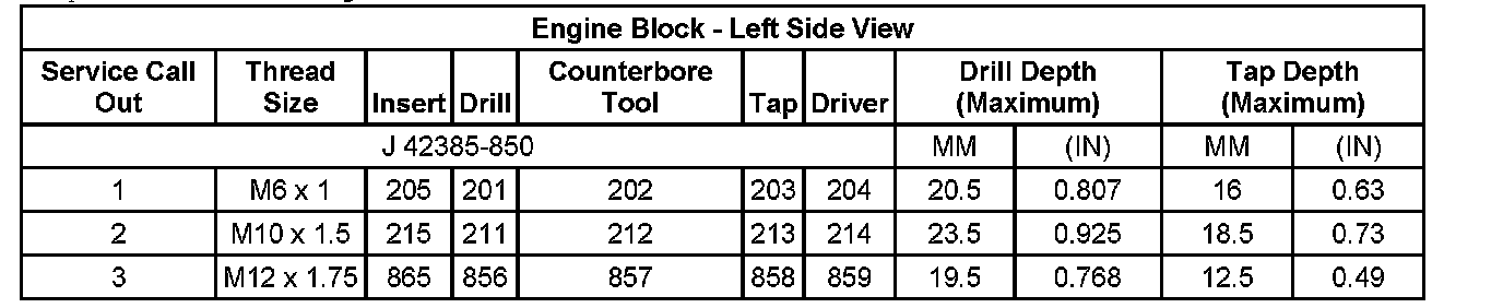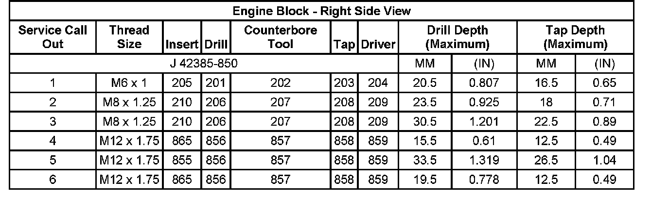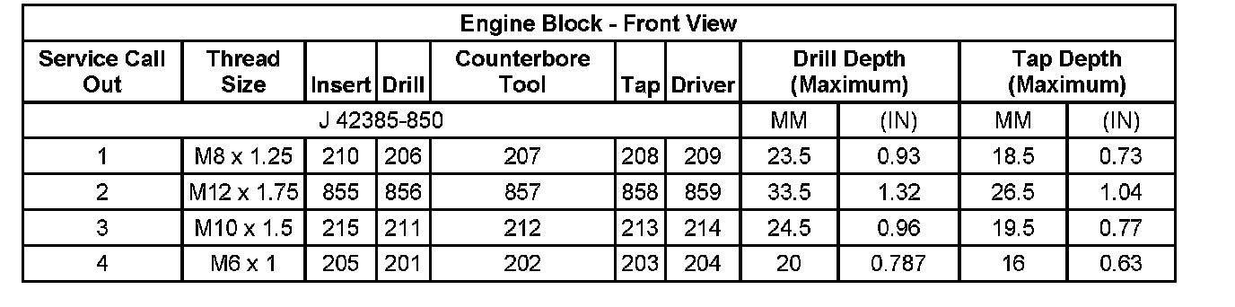 Thread Repair SpecificationsEngine Block - Front View: