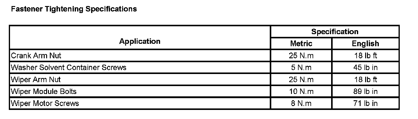 Wiper and Washer Systems: Specifications