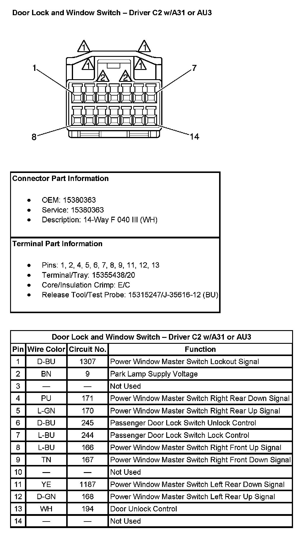 Door Lock And Window Switch - Driver C2 (With RPO Code A31 Or AU3):