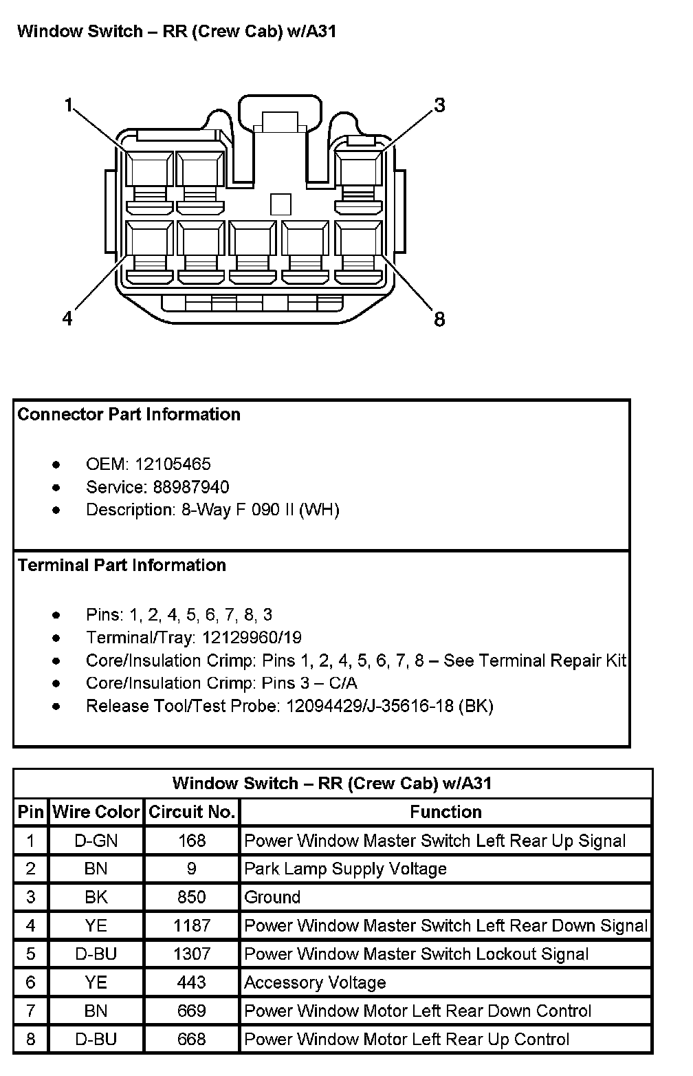 Window Switch - RR (Crew Cab) (With RPO Code A31):