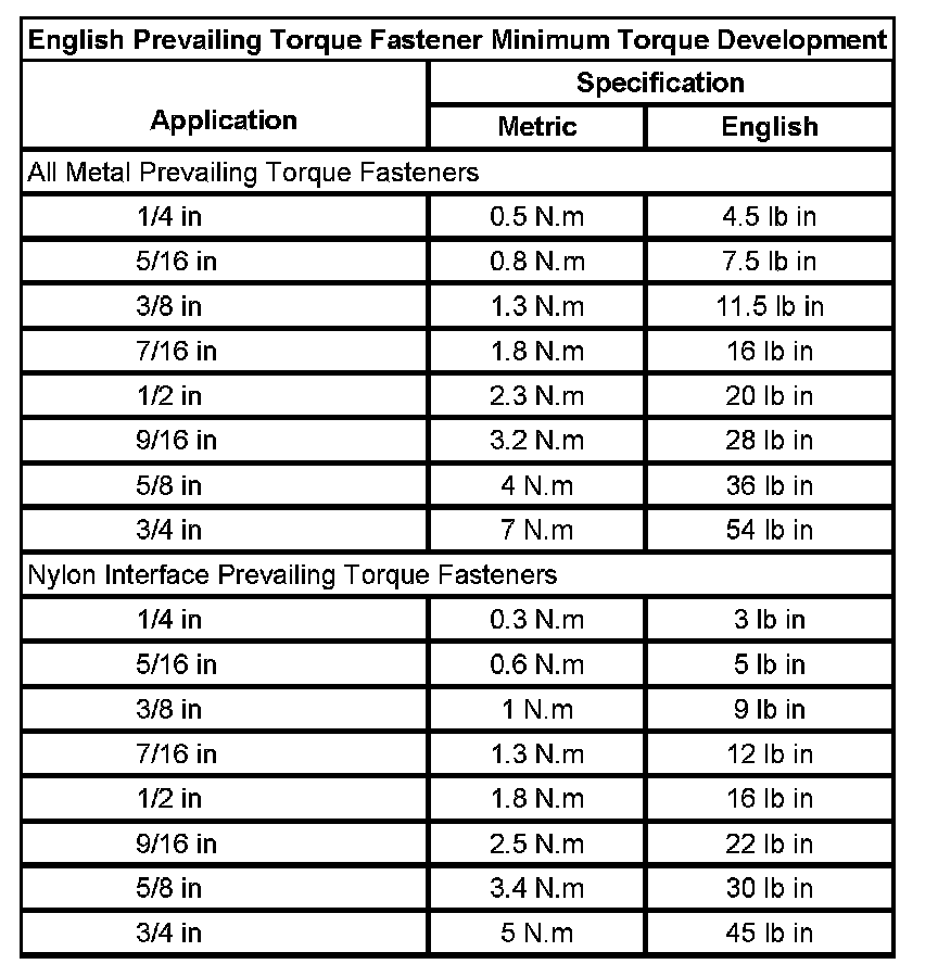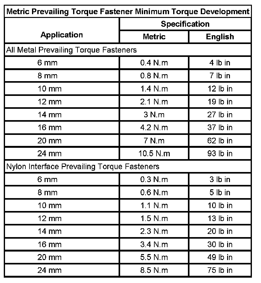 Prevailing Torque Fasteners
