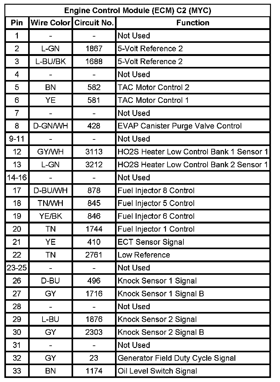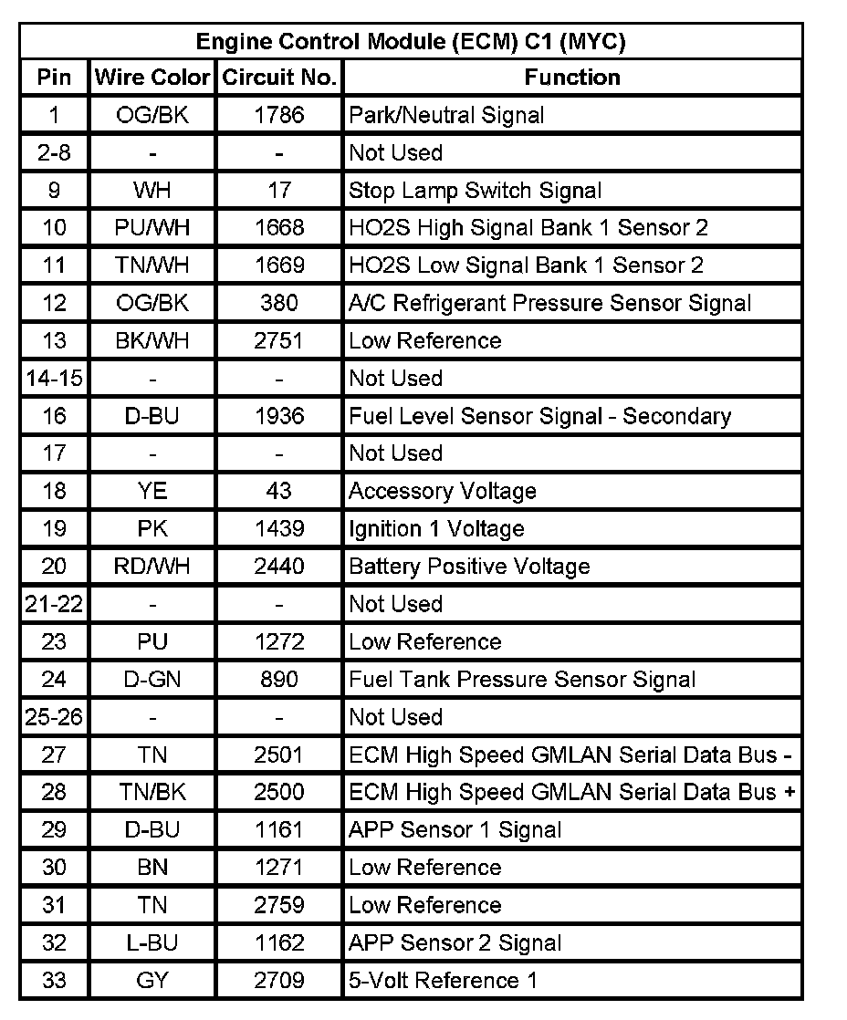Engine Control Module (ECM) C1 (MYC) (Pin 1 To 33):