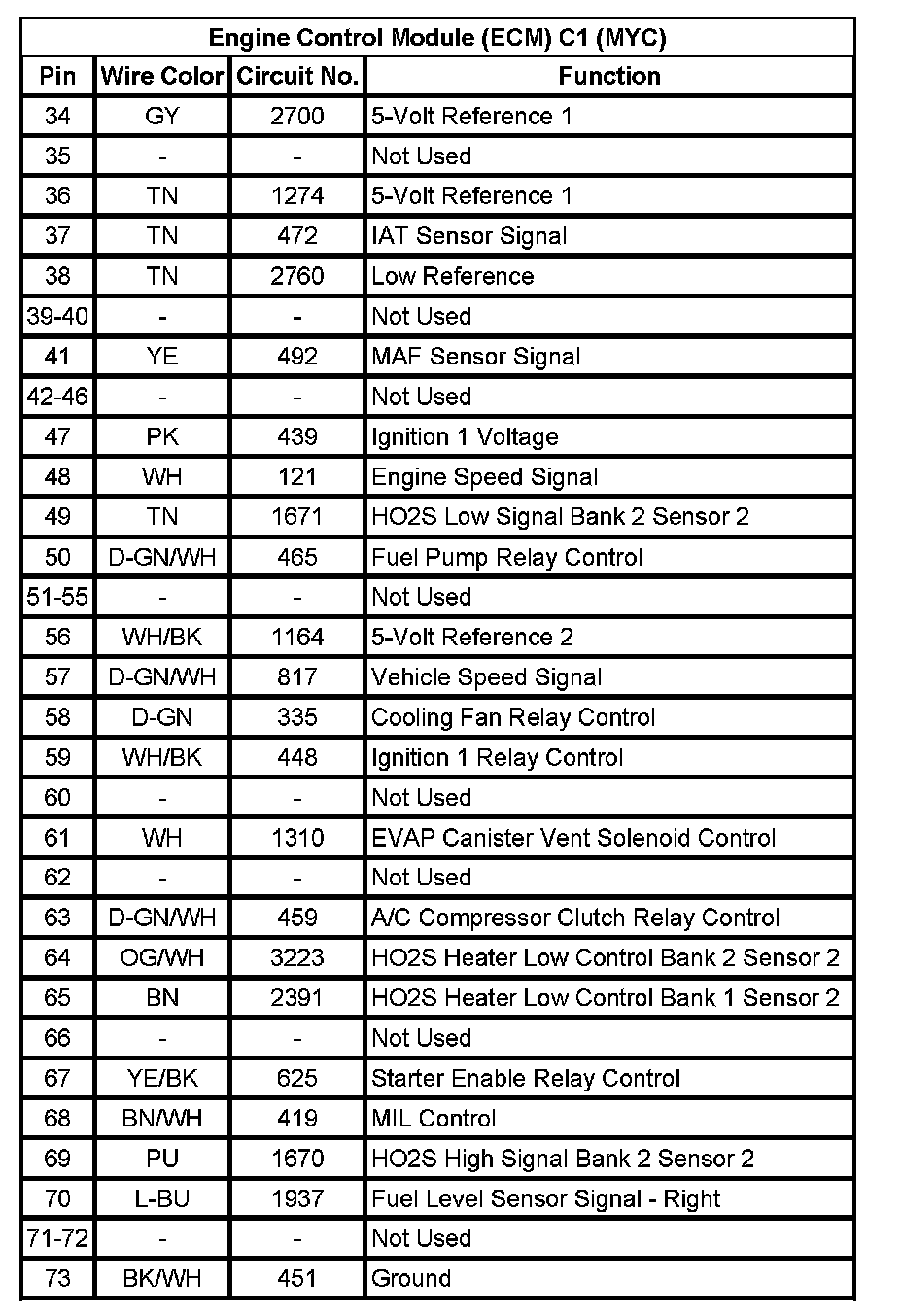 Engine Control Module (ECM) C1 (MYC) (Pin 34 To 73):