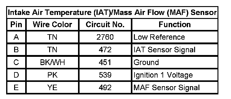 Intake Air Temperature (IAT)/Mass Air Flow (MAF) Sensor