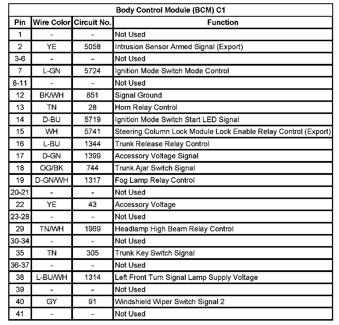 Body Control Module (BCM) C1 (Pin 1 To 41):