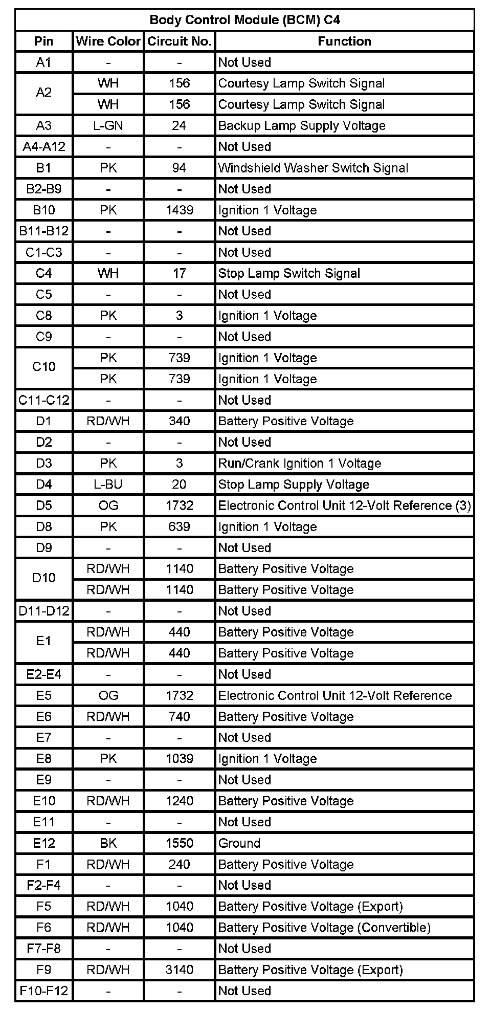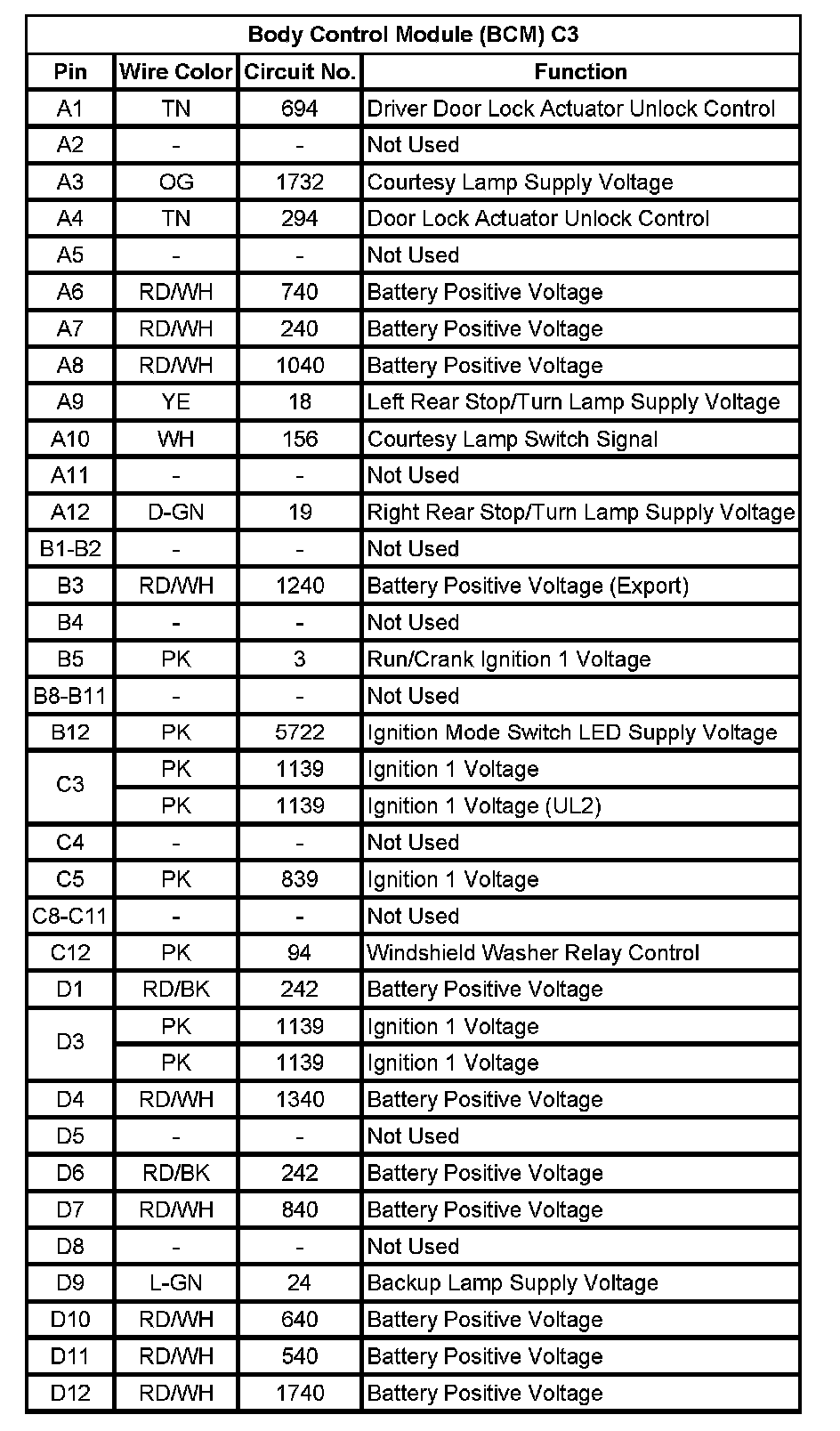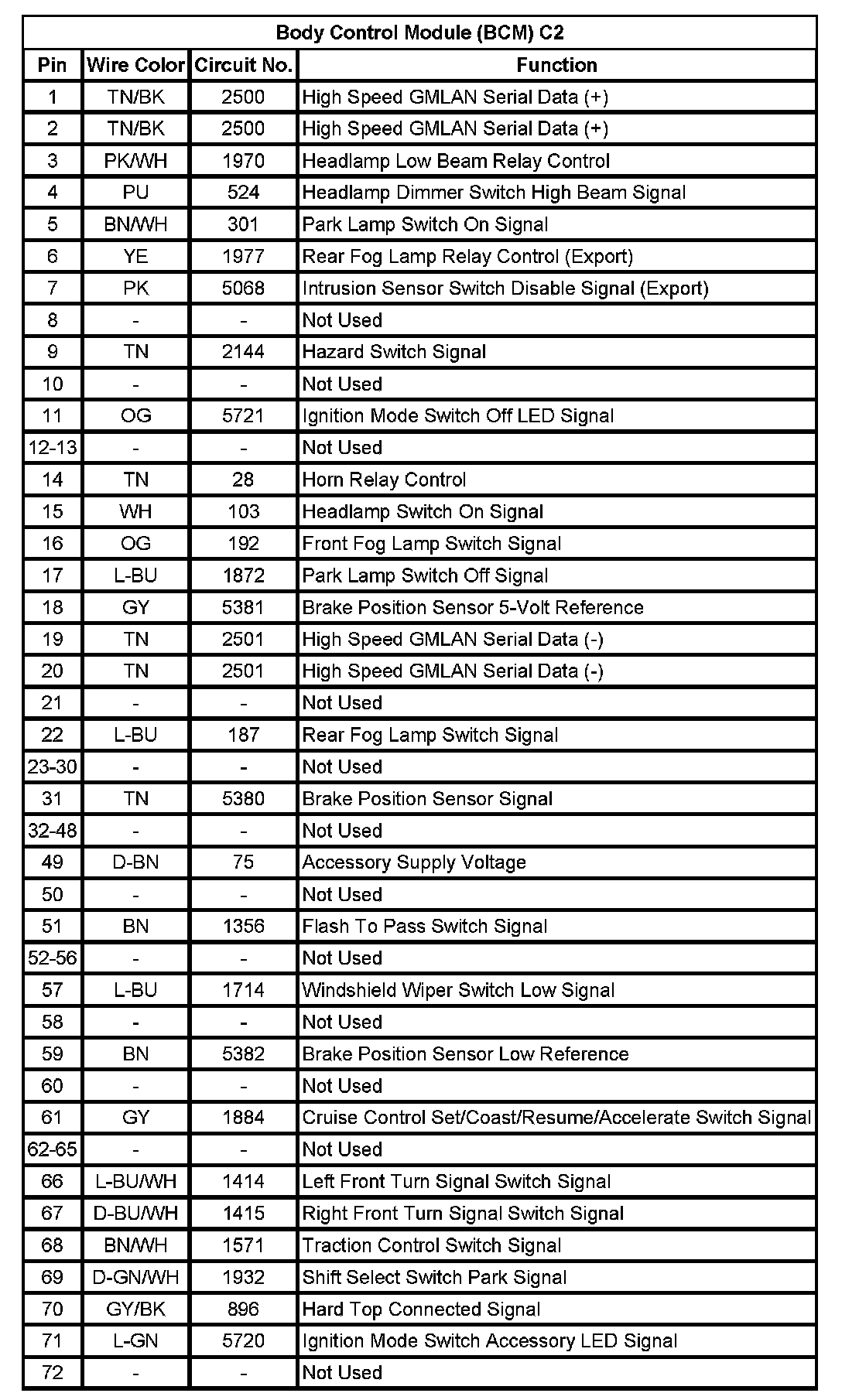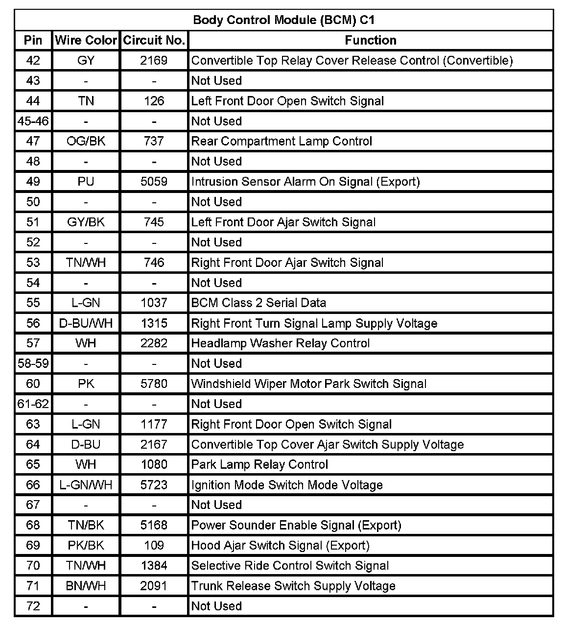 Body Control Module (BCM) C1 (Pin 42 To 72):