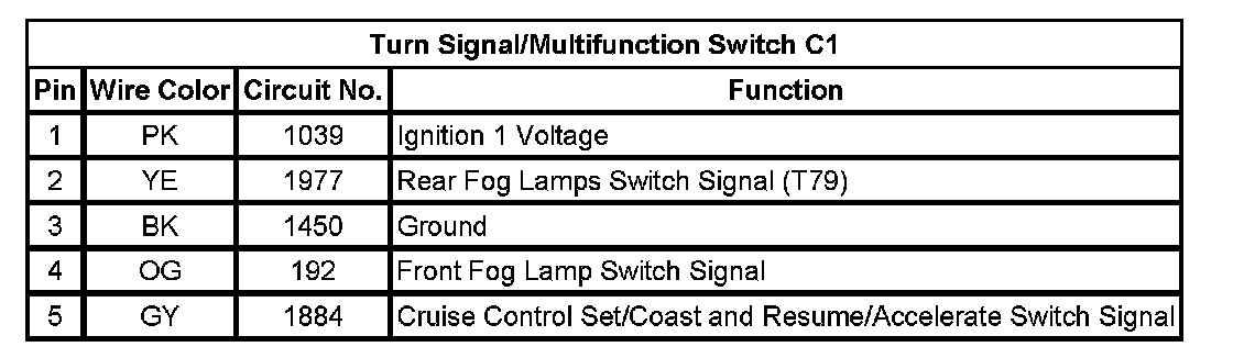 Turn Signal/Multifunction Switch C1