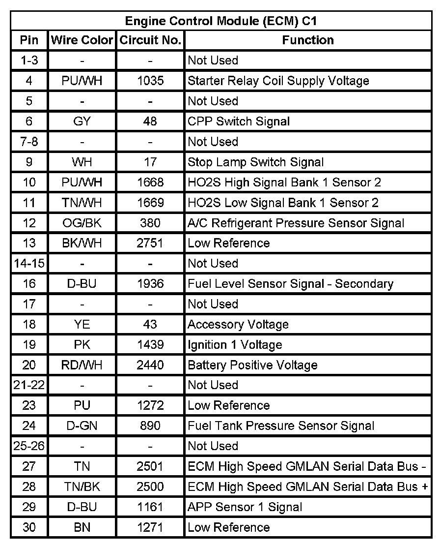 Engine Control Module (ECM) C1 (Pin 1 To 30):