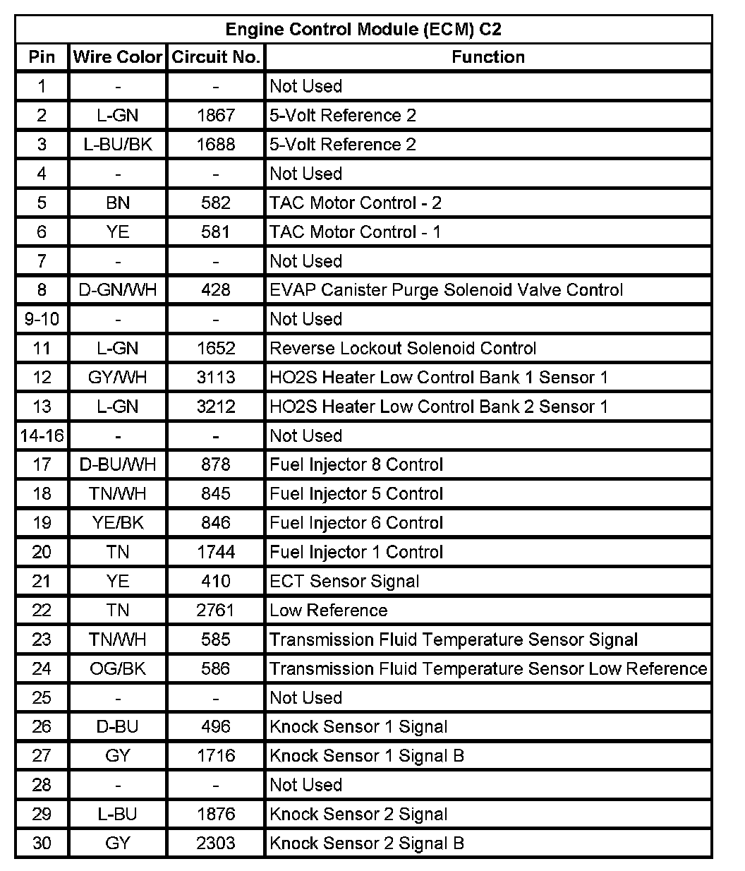 Engine Control Module (ECM) C2 (Pin 1 To 30):