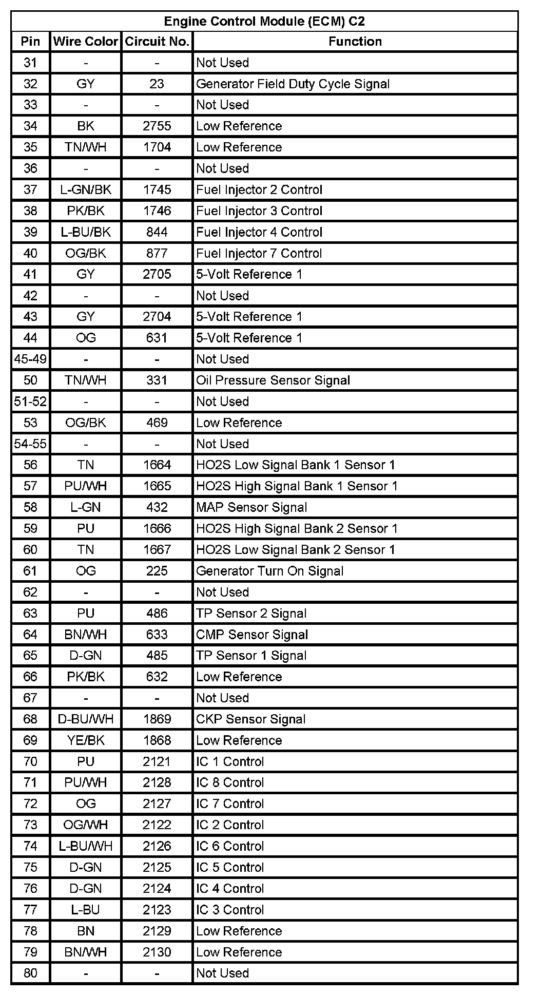 Engine Control Module (ECM) C2 (Pin 31 To 80):
