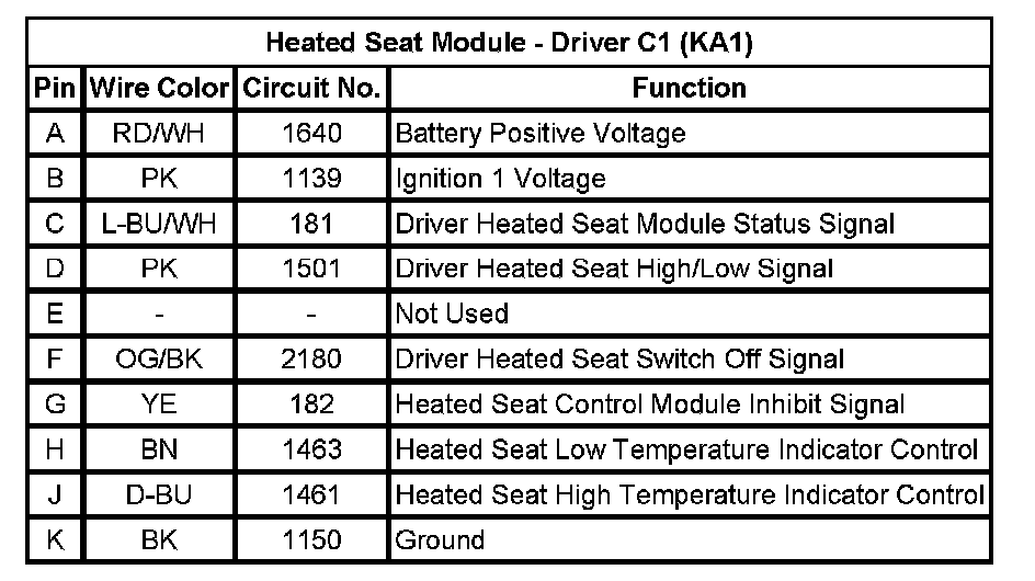 Heated Seat Module - Driver C1 (KA1)