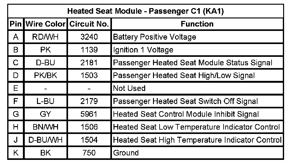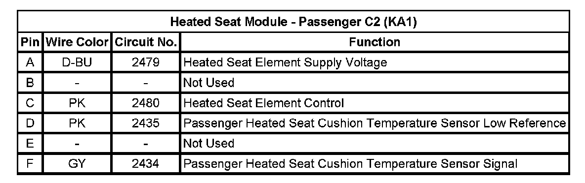 Heated Seat Module - Passenger C2 (KA1)