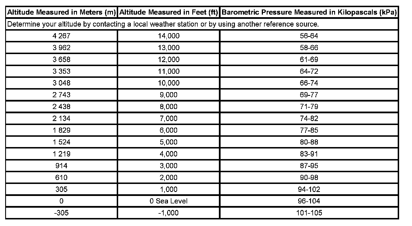 Altitude Versus Barometric Pressure