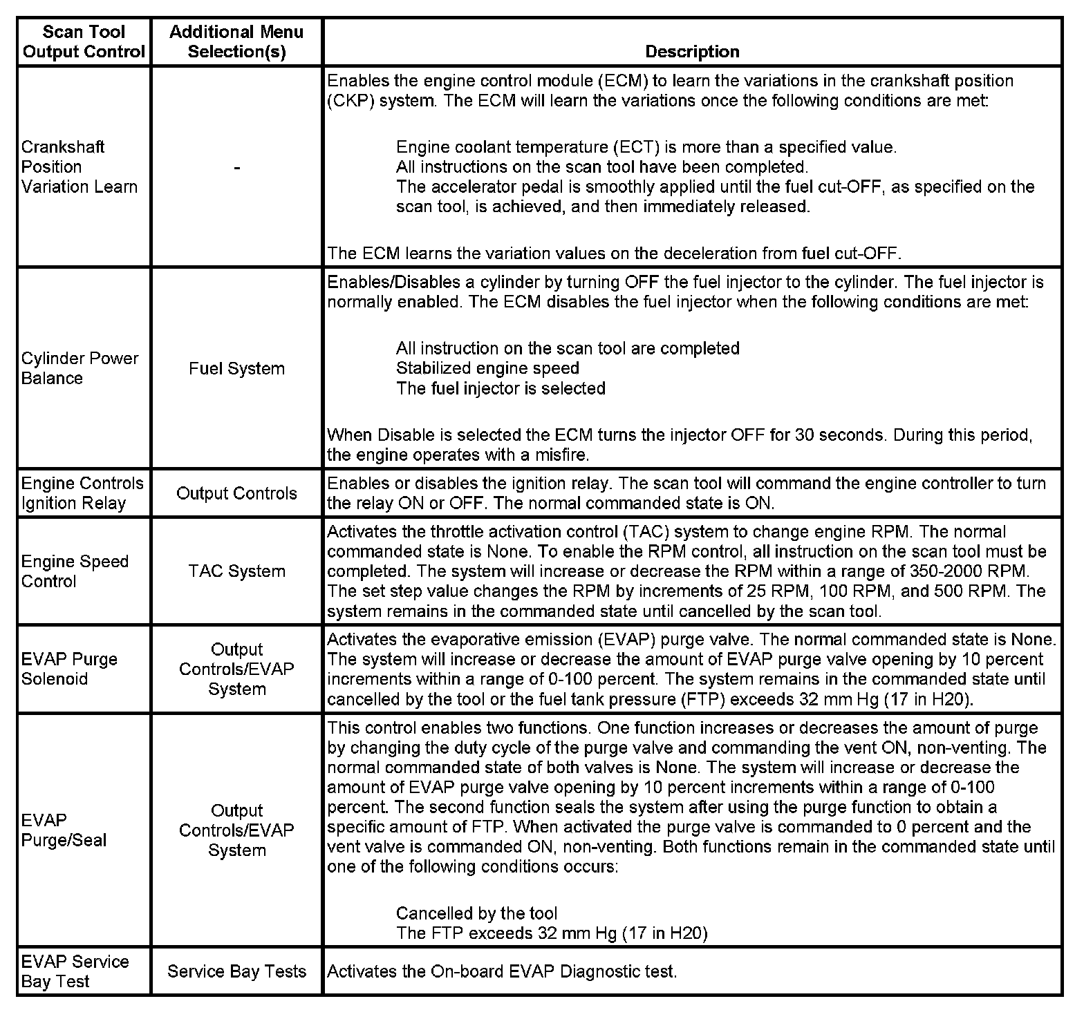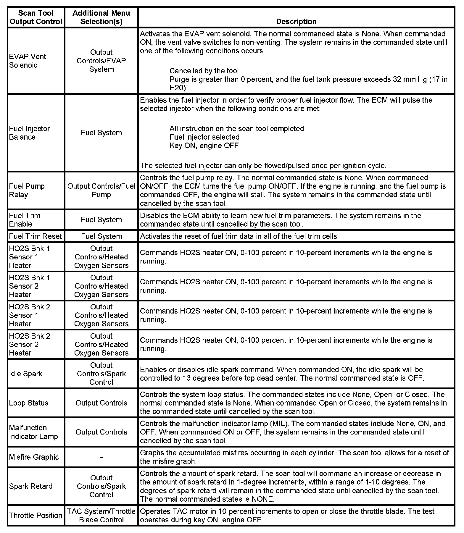 Scan Tool Output Controls