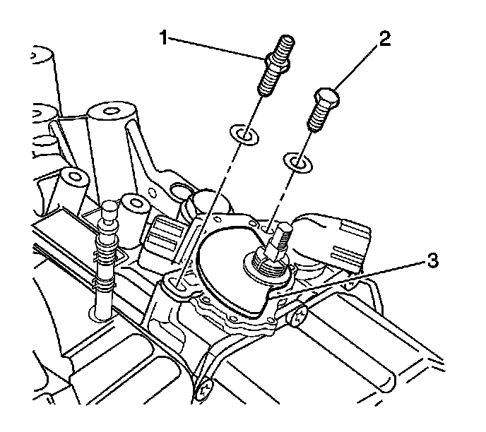 4. Loosen the transaxle range switch bolt (2) and stud (1).
