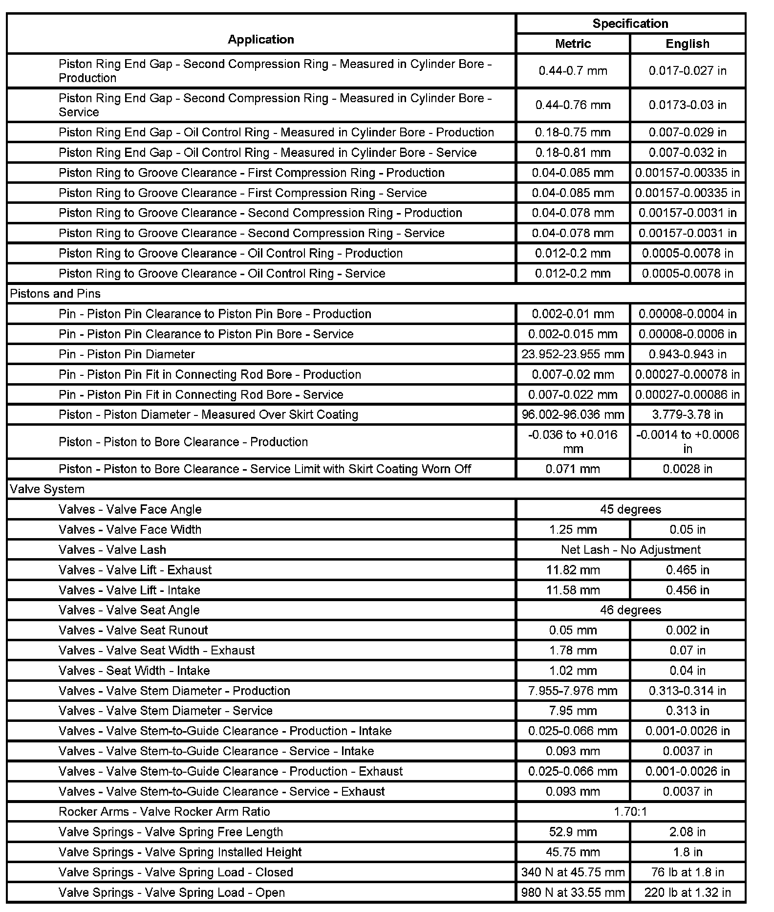 Engine General Specifications & Service Limits