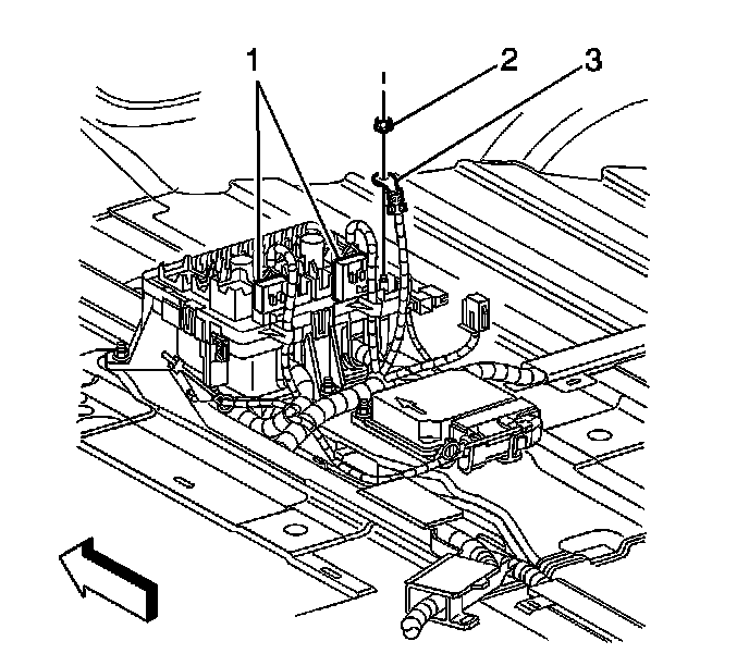5. Remove the positive battery cable (3) from the junction block.