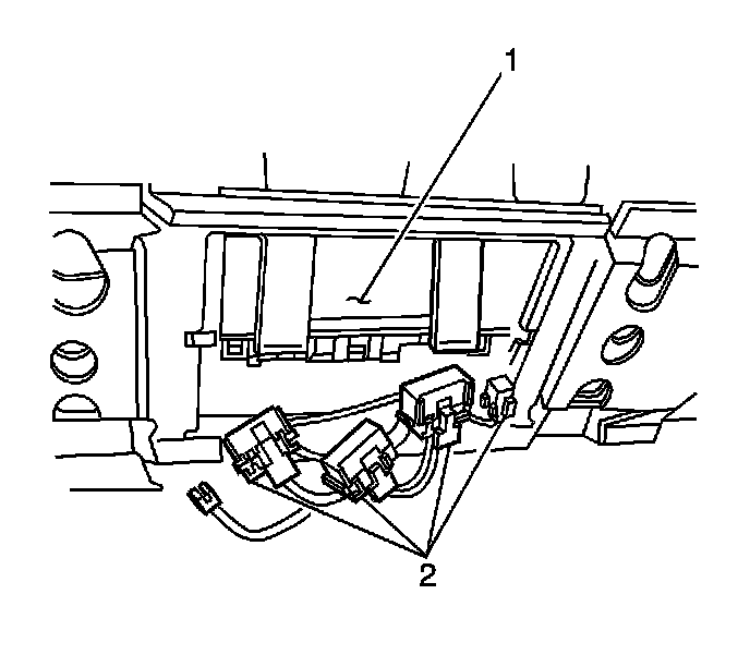1. Install the BCM (1) into the bracket.Ensure the BCM (1) is engaged in the bracket, under the retaining tabs (2).