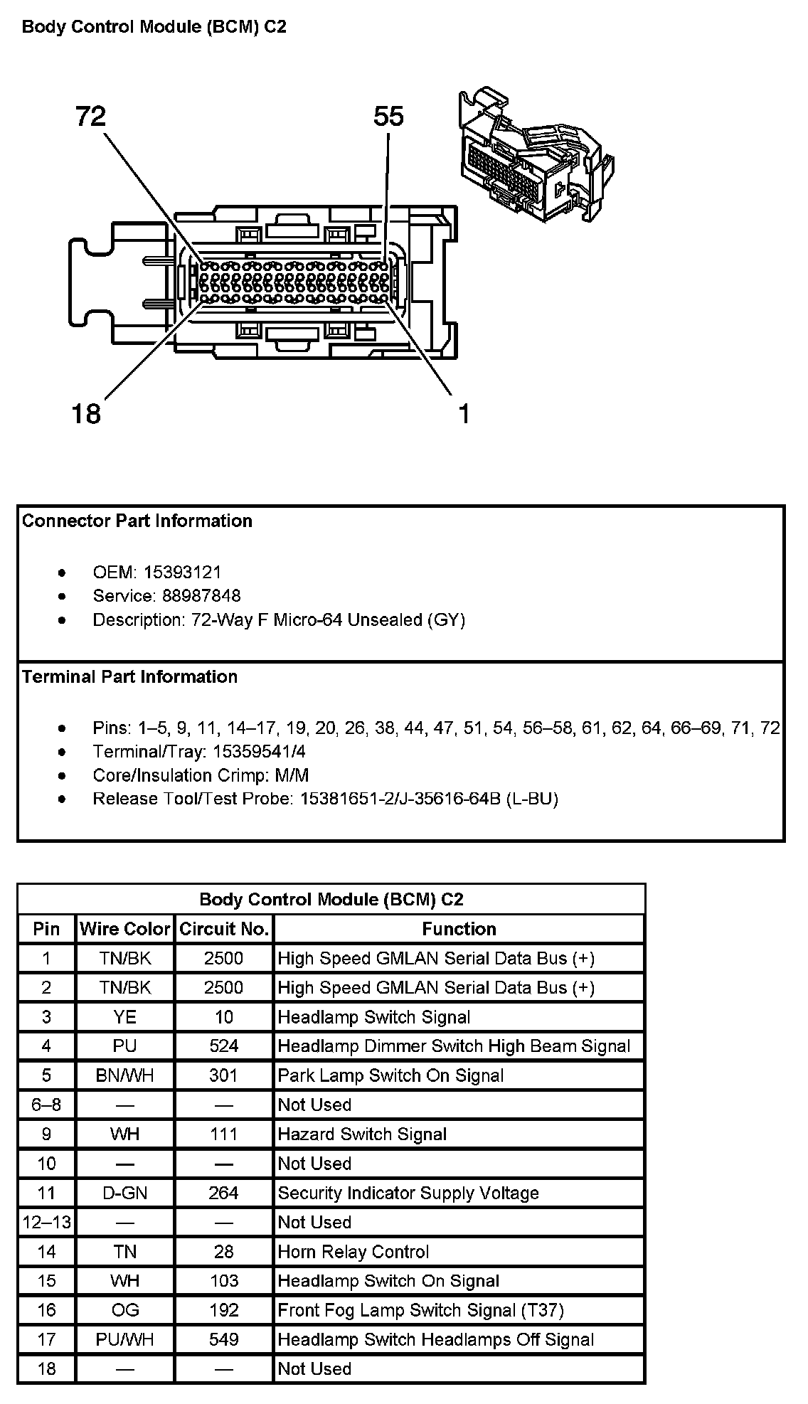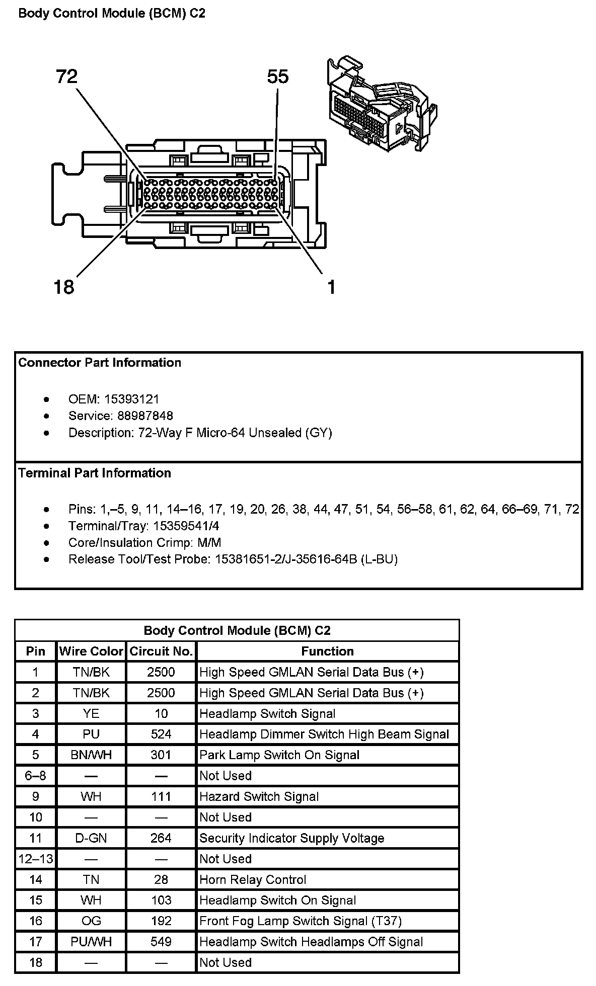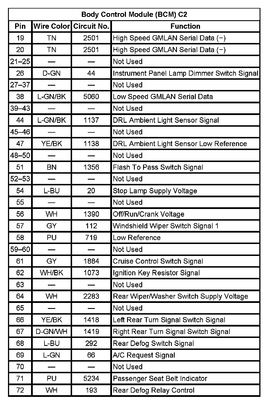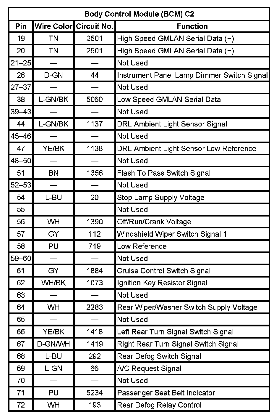 Body Control Module (BCM) C2 (Pin 19 To 72):