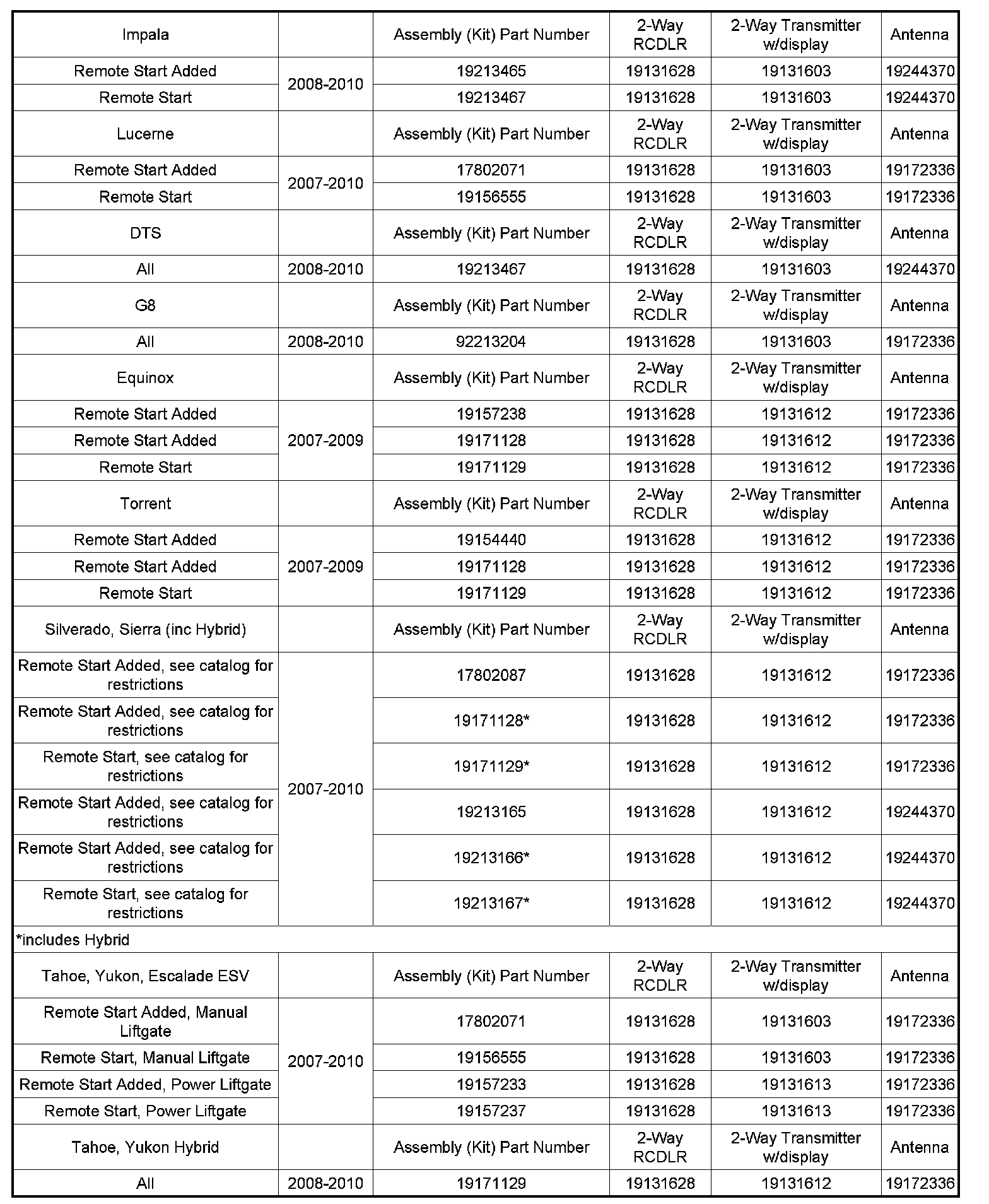Subject: GM Accessories: 2-Way Advanced Remote Start Systems Part Information