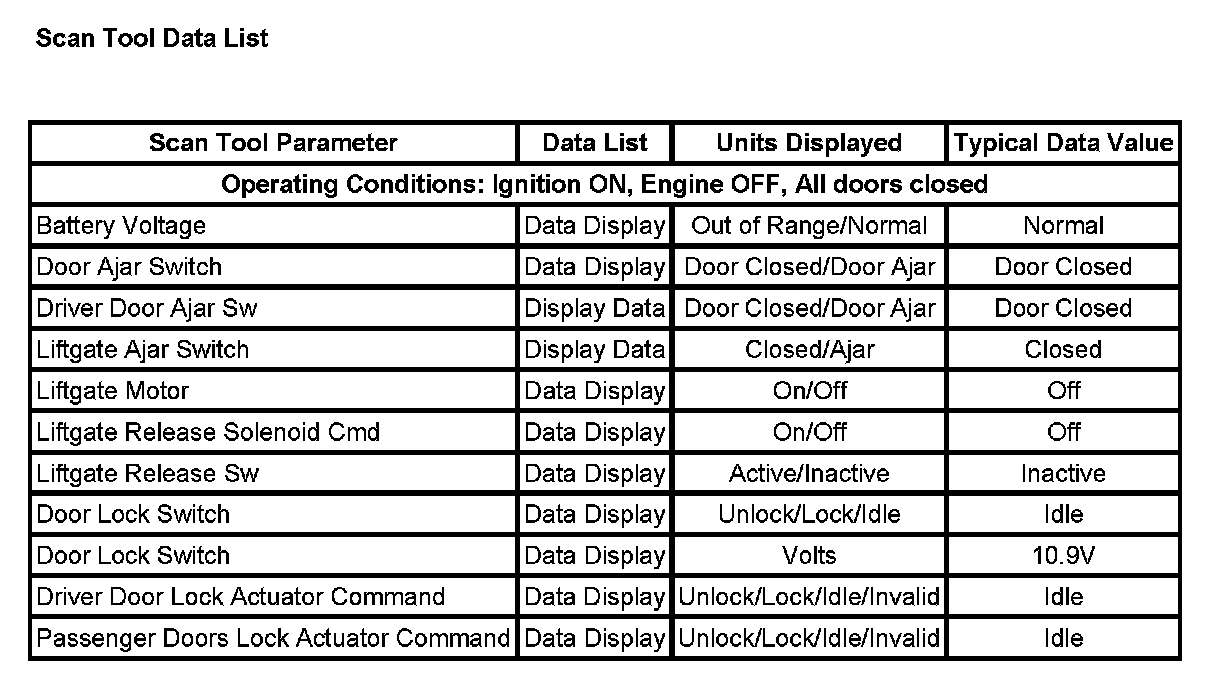 Scan Tool Data List: