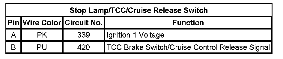 Stop Lamp/TCC/Cruise Release Switch