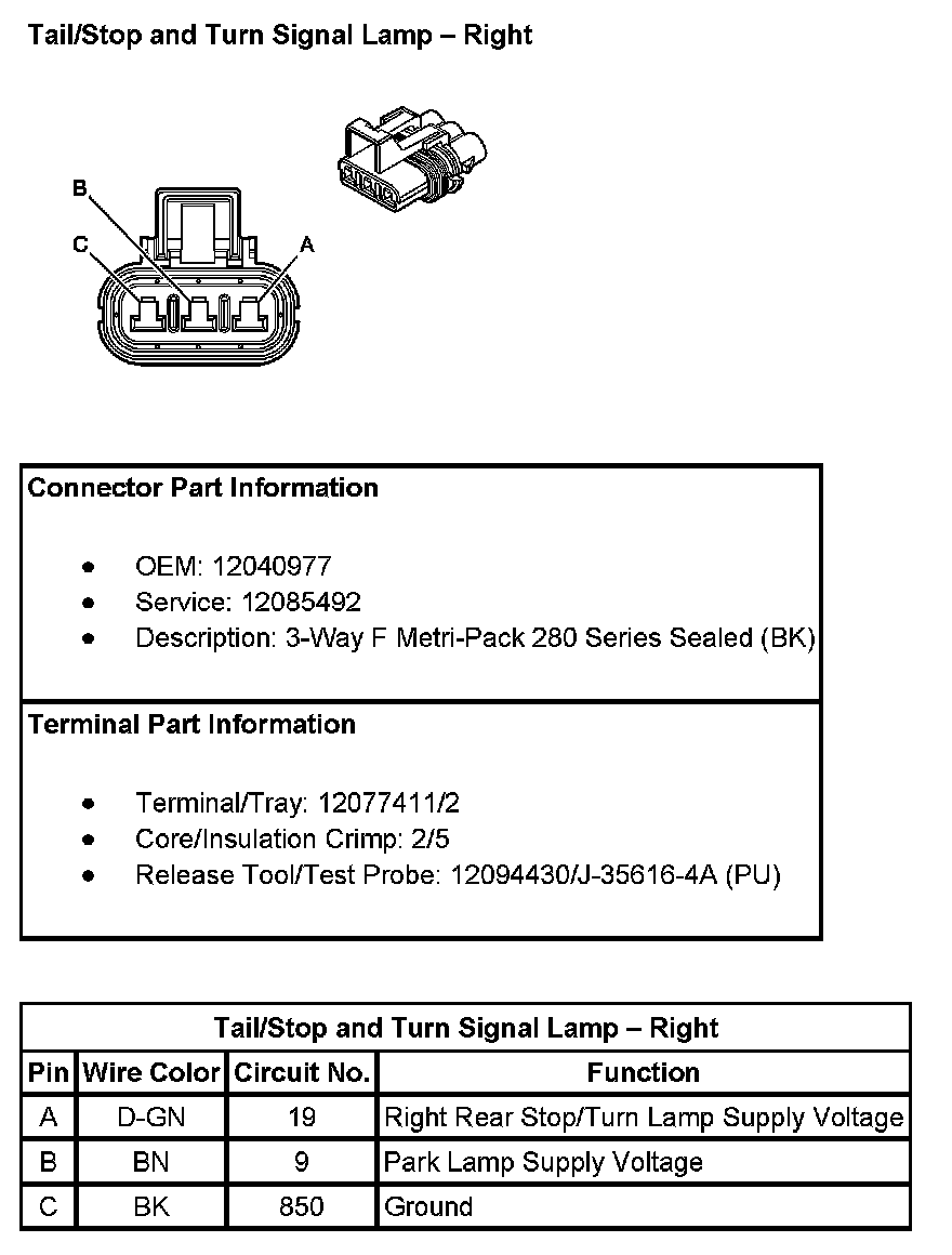 Tail/Stop And Turn Signal Lamp - Right: