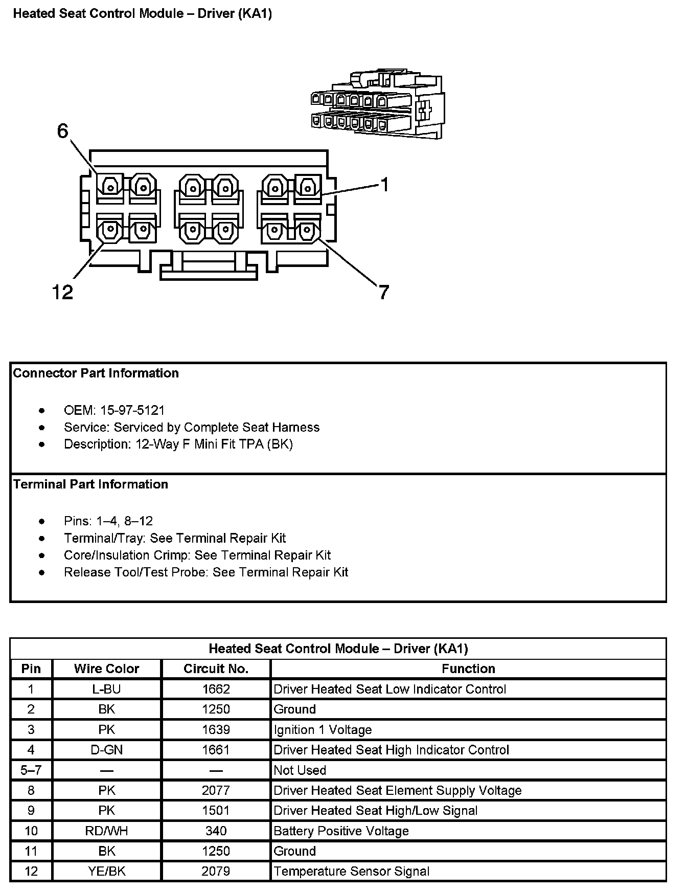 Heated Seat Control Module - Driver (With RPO Code KA1):
