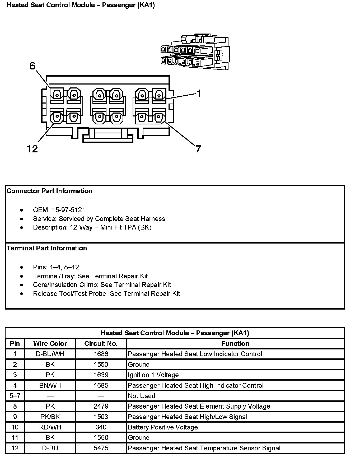 Heated Seat Control Module - Passenger (With RPO Code KA1):