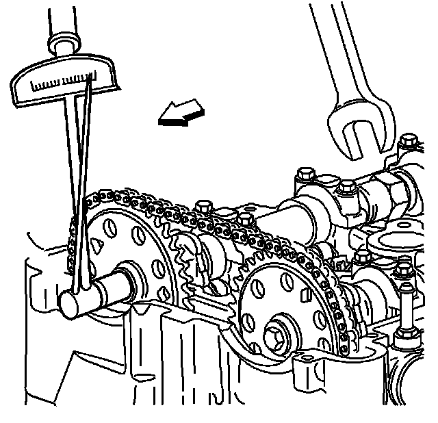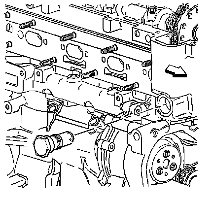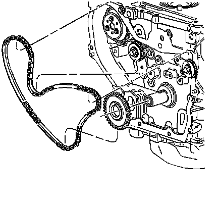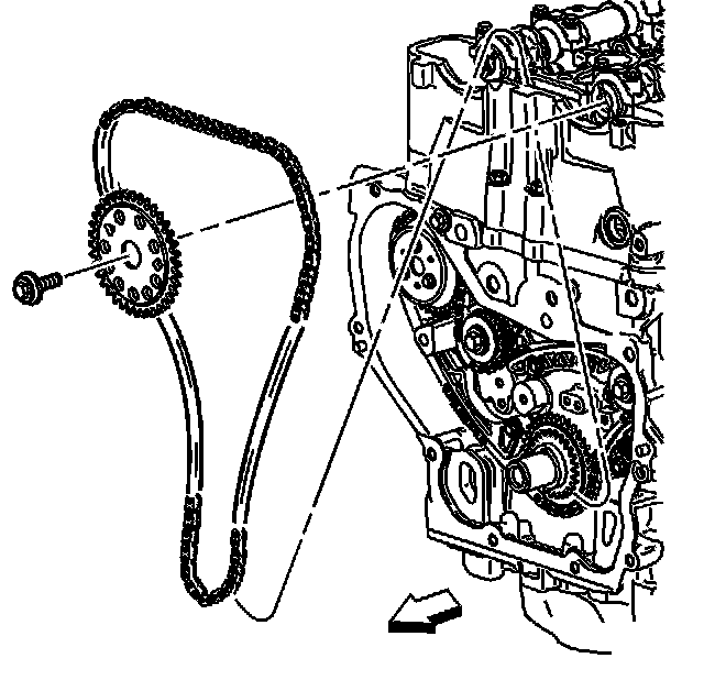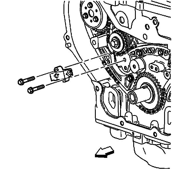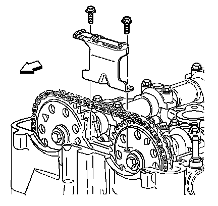 Important: The timing chain tensioner must be removed to unload chain tension before the timing chain is removed. If not removed, the timing chain will become cocked and it will be difficult to remove.