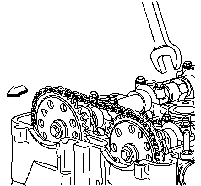 11. Use a 24 mm wrench to hold the camshafts from turning.