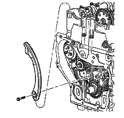 Install the adjustable timing chain guide through the opening in the cylinder head and install the adjustable timing chain bolt.