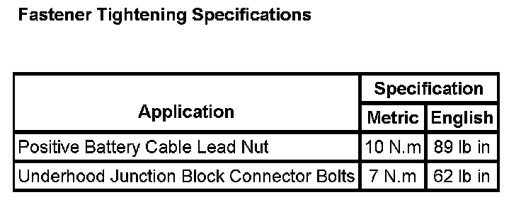 Fastener Tightening Specifications: