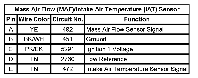 Mass Air Flow (MAF)/Intake Air Temperature (IAT) Sensor
