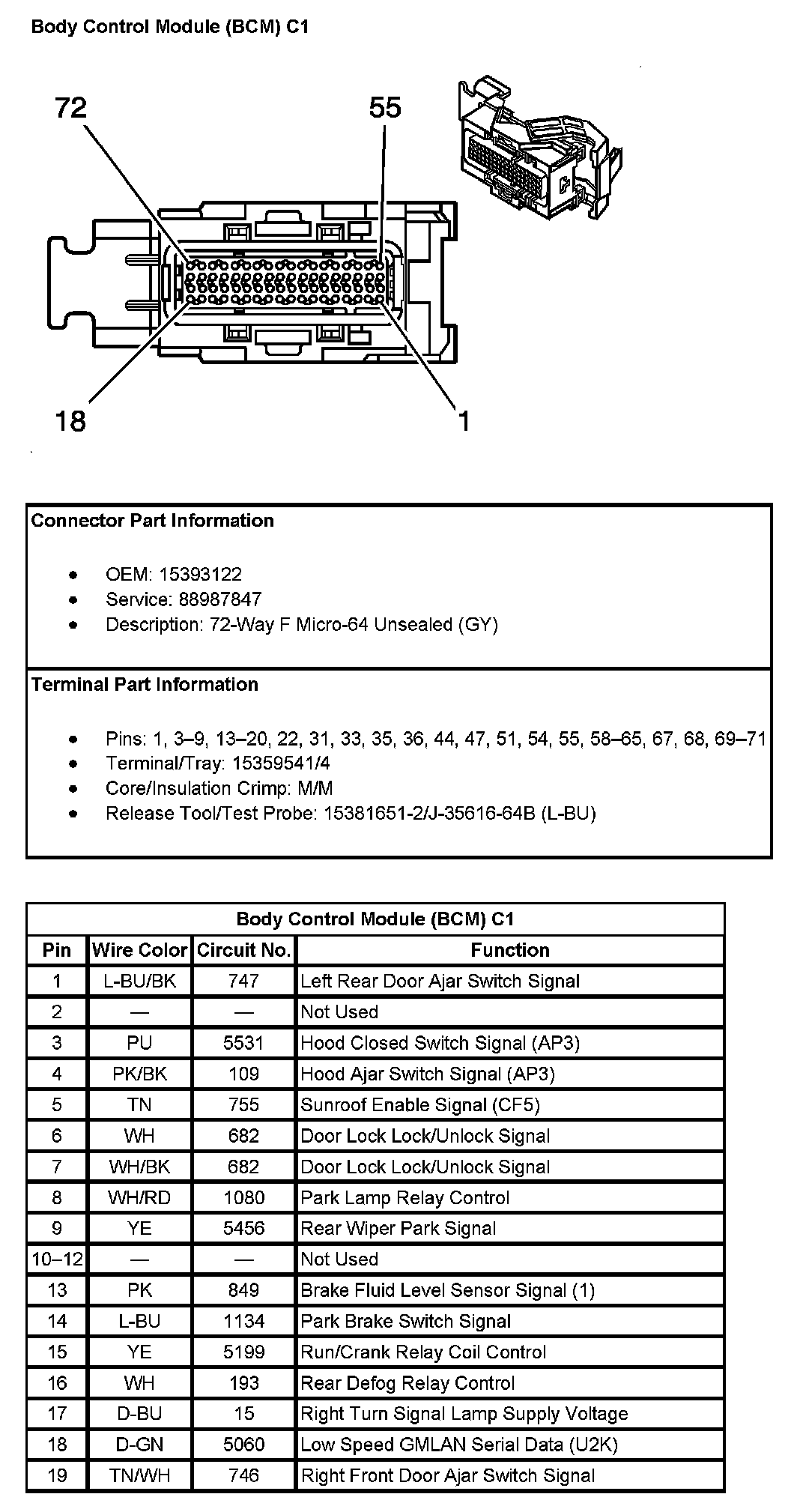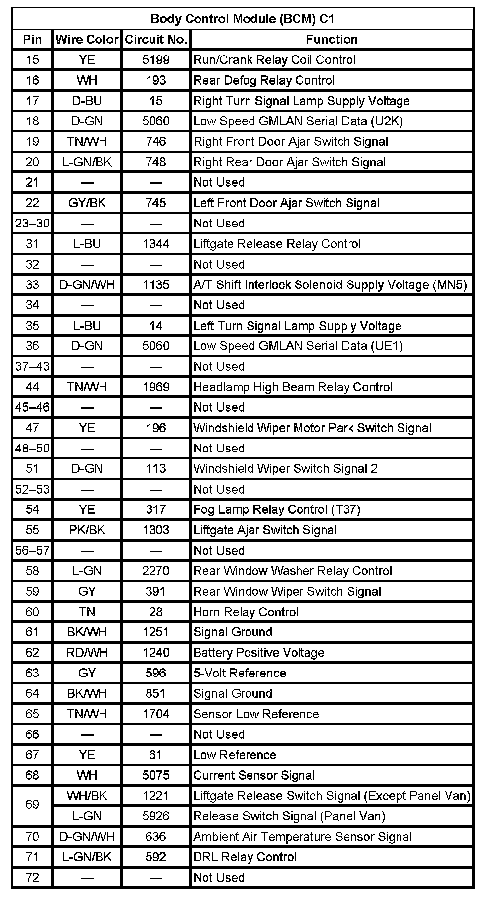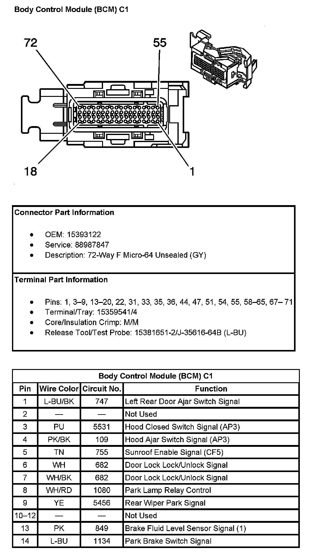 Body Control Module (BCM) C1 (Pin 15 To 72):