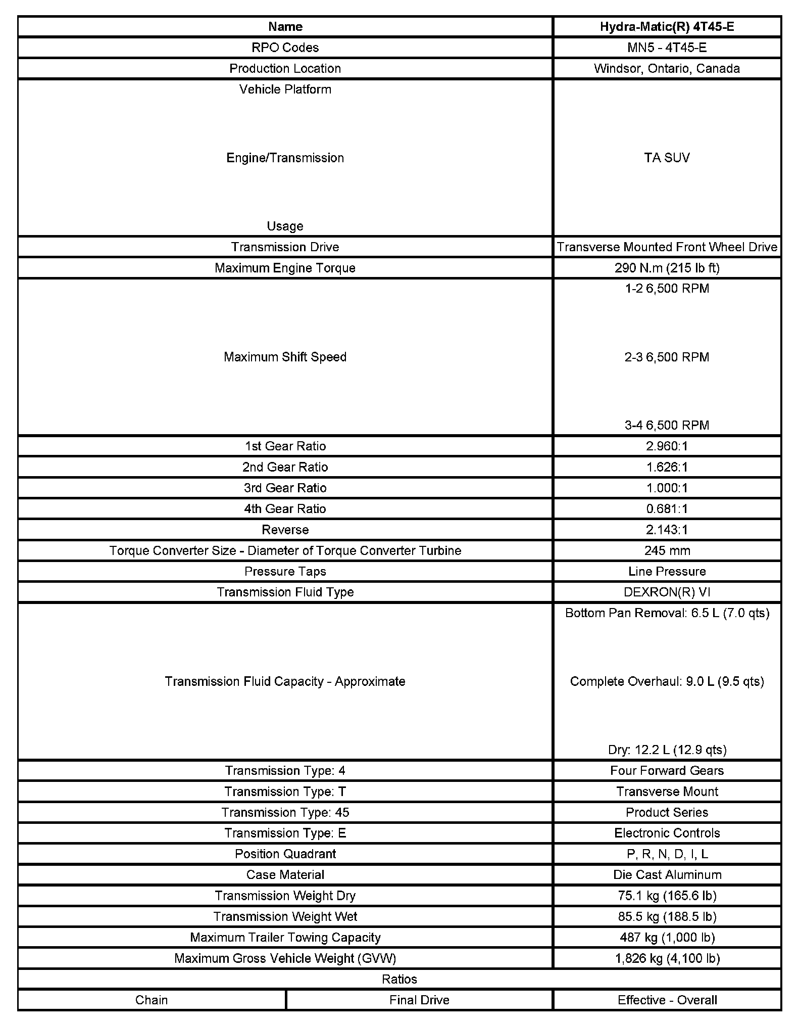 Transmission General Specifications