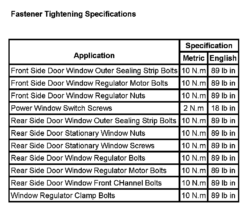 Fastener Tightening Specifications: