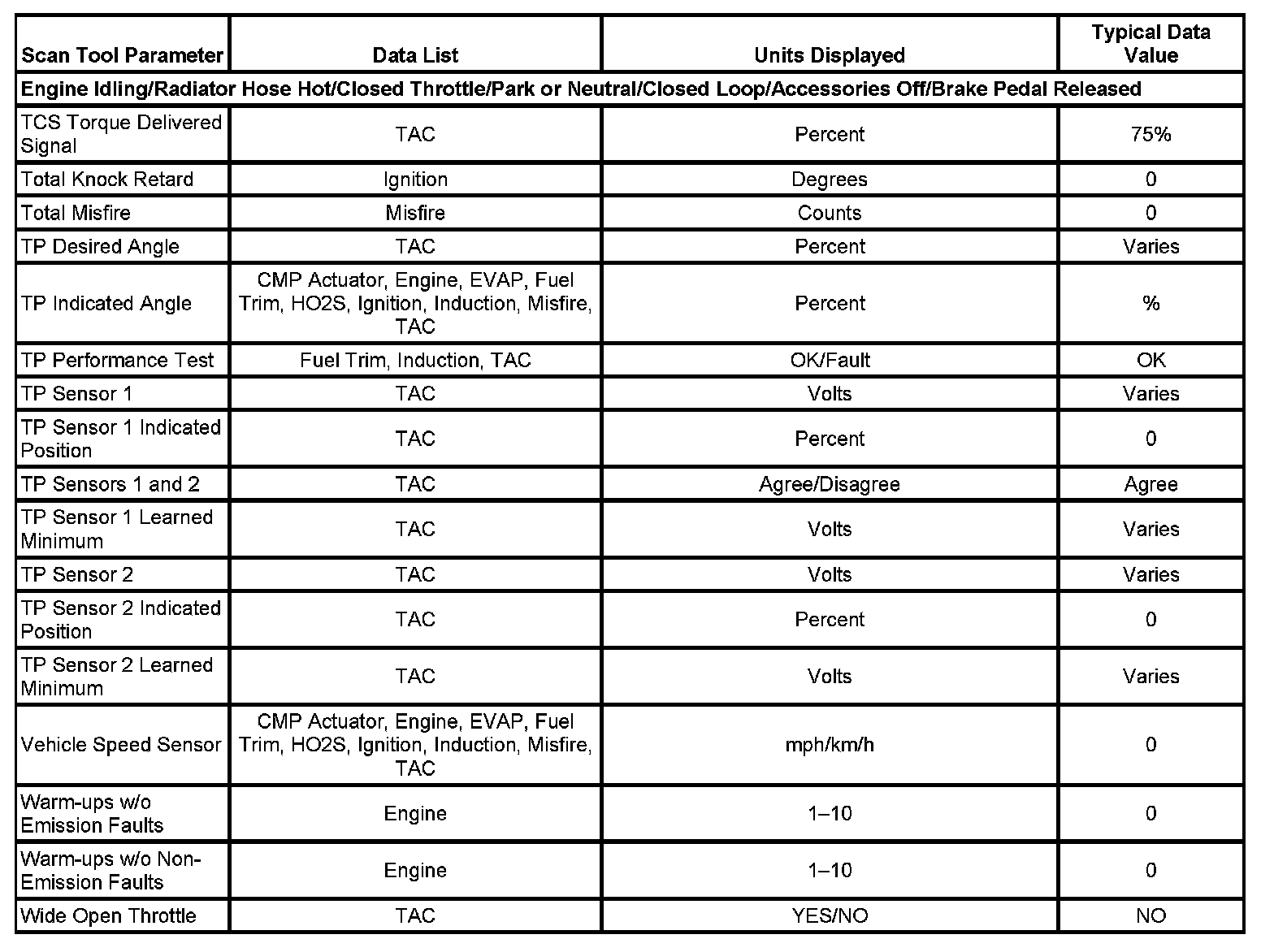 Only the parameters listed below are referenced in this service data for use in diagnosis. If all values are within the typical range described below, refer to Symptoms - Computers and Control Systems for diagnosis. - Symptoms - Engine Controls