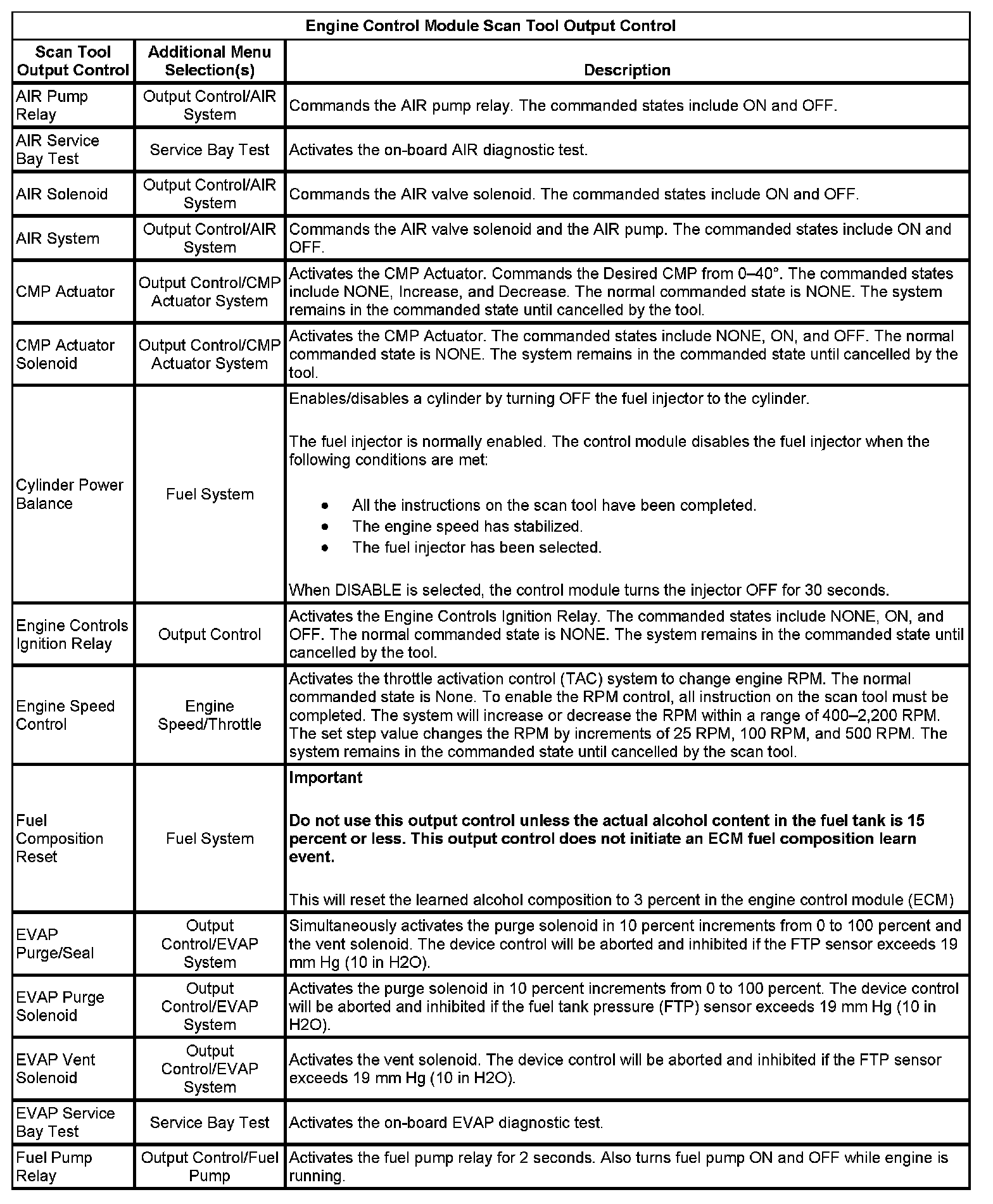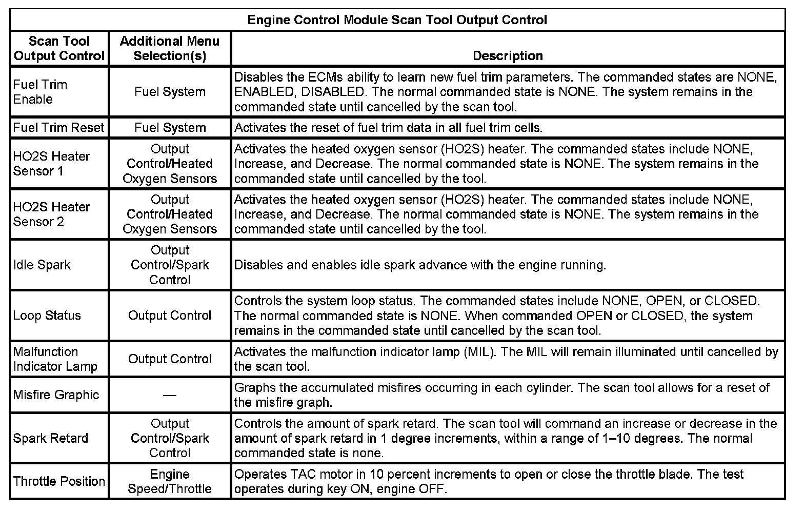 Scan Tool Output Controls