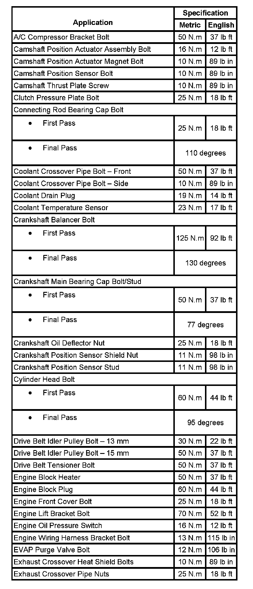 Fastener Tightening Specifications: