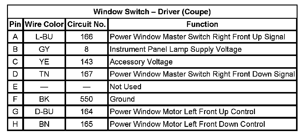 Window Switch - Driver (Coupe)