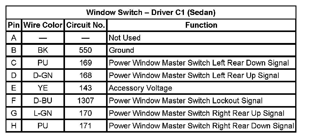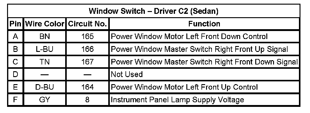Window Switch - Driver C2 (Sedan)