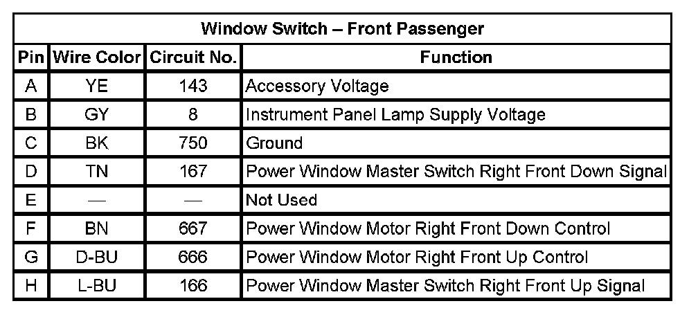 Window Switch - Front Passenger