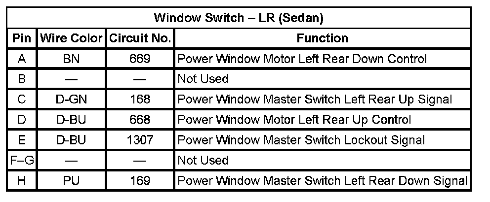 Window Switch - LR (Sedan)